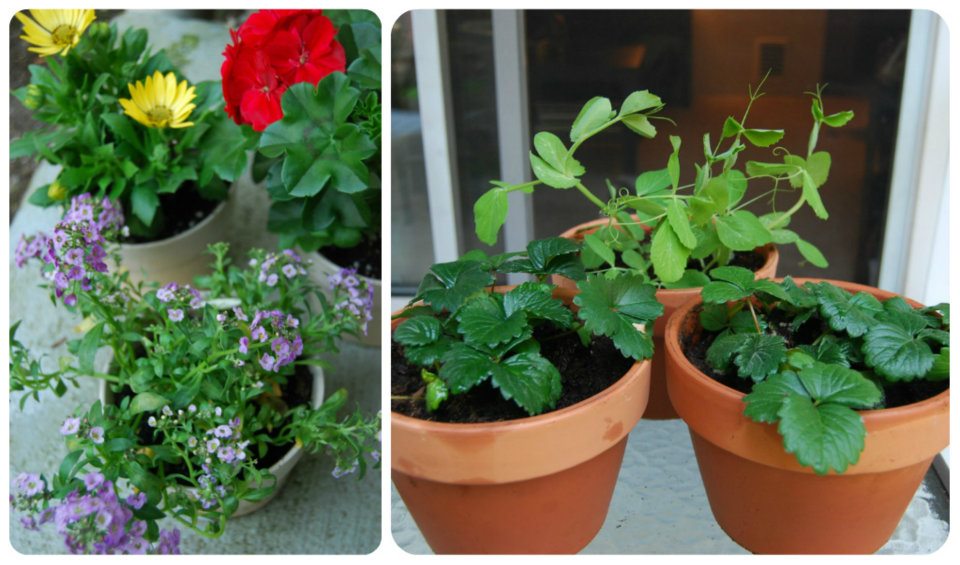 Thought I would finally share some photos of the things I planted for our little patio garden a few weeks ago! African Daisies, Strawberries, Sweet Peas and various other flowers. I especially can not wait till the summer when I can pick some of the fresh strawberries....yummy!